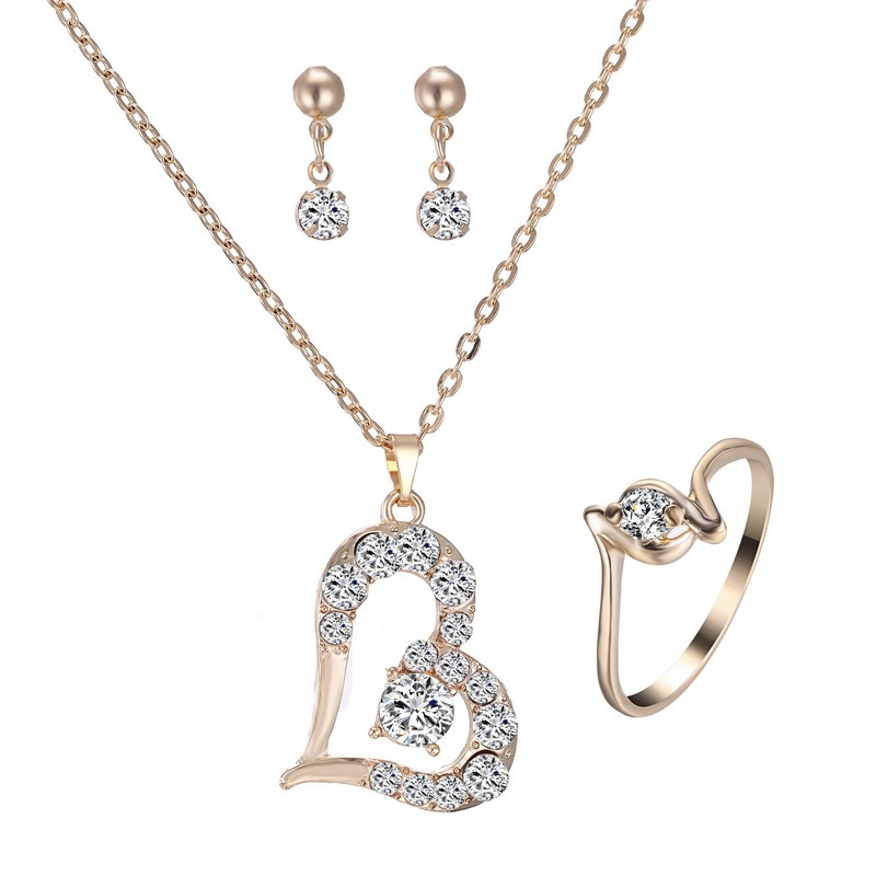 Heart Pendant Jewelry Set Rhinestone Jewellery