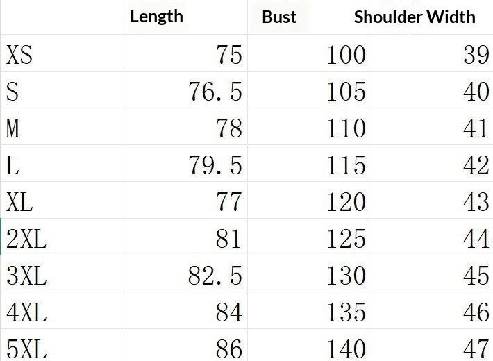 Sizes: XS, S, M, L, XL, 2XL, 3XL, 4XL, 5XL