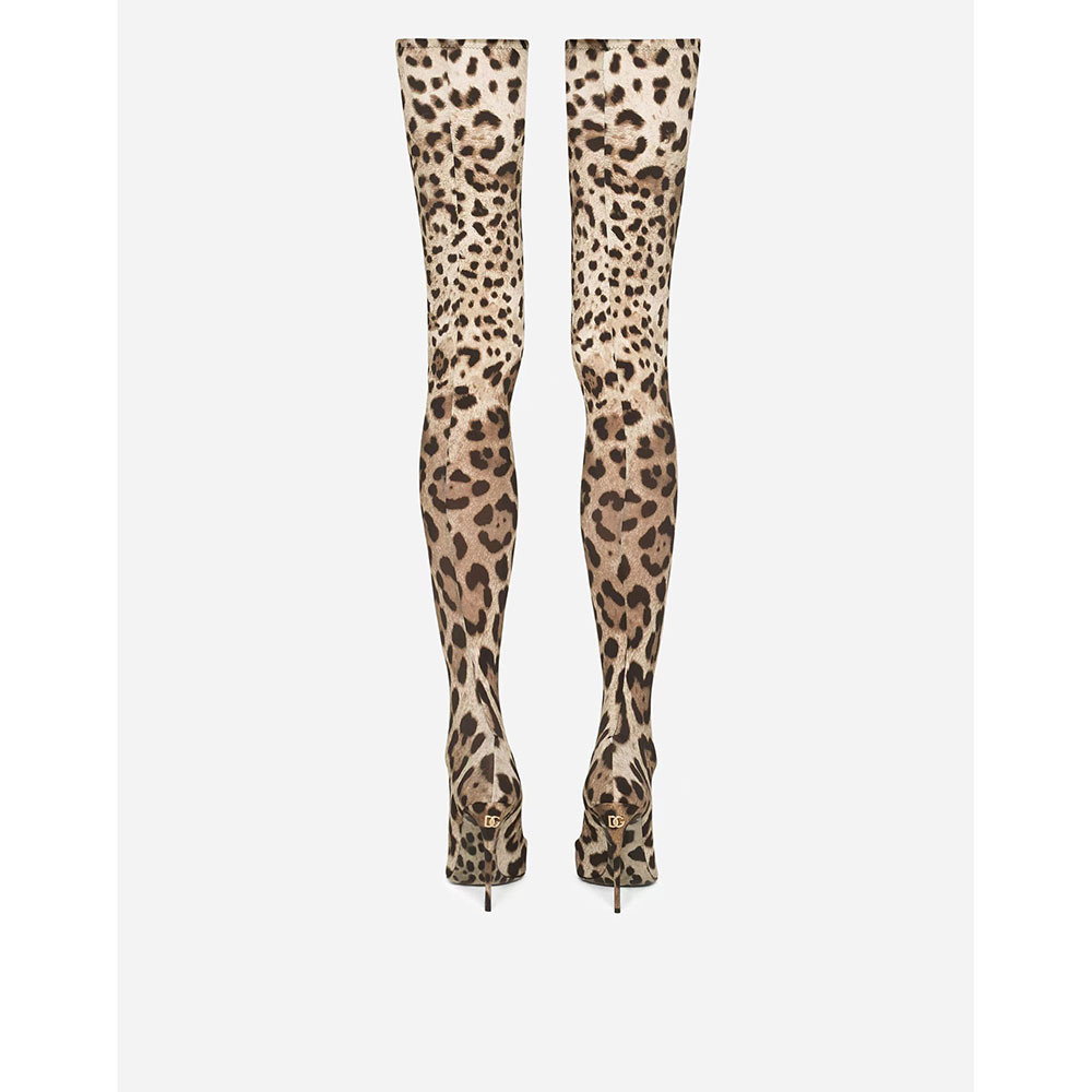 Pointed-toe High-heeled Leopard-print Ultra-long Knee-high Stretch Boots