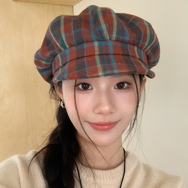 1 review for Retro Colored Plaid Clouds Beret Women