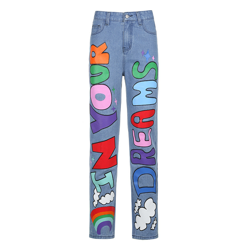 Popular elements: printed graffiti casual pants